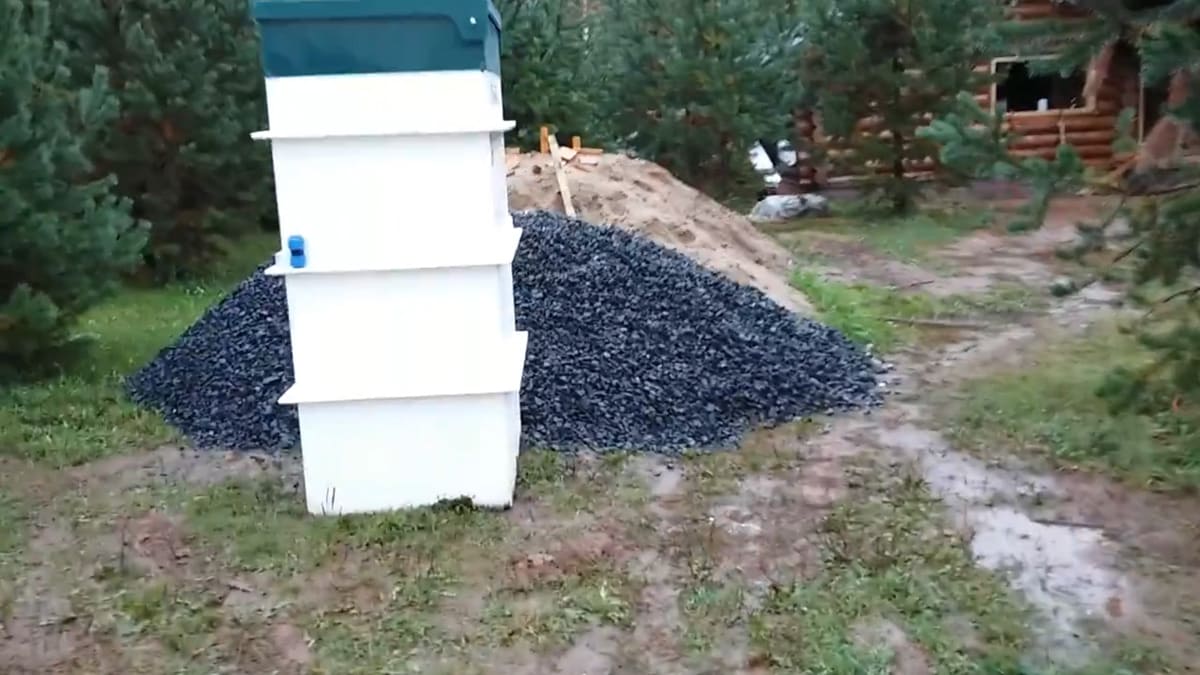 Подводящая труба должна входить в емкость станции на глубине 45 - 60 см, отводящая может быть расположена в 60 см от поверхности грунта. Срок эксплуатации септика – более 50 лет.