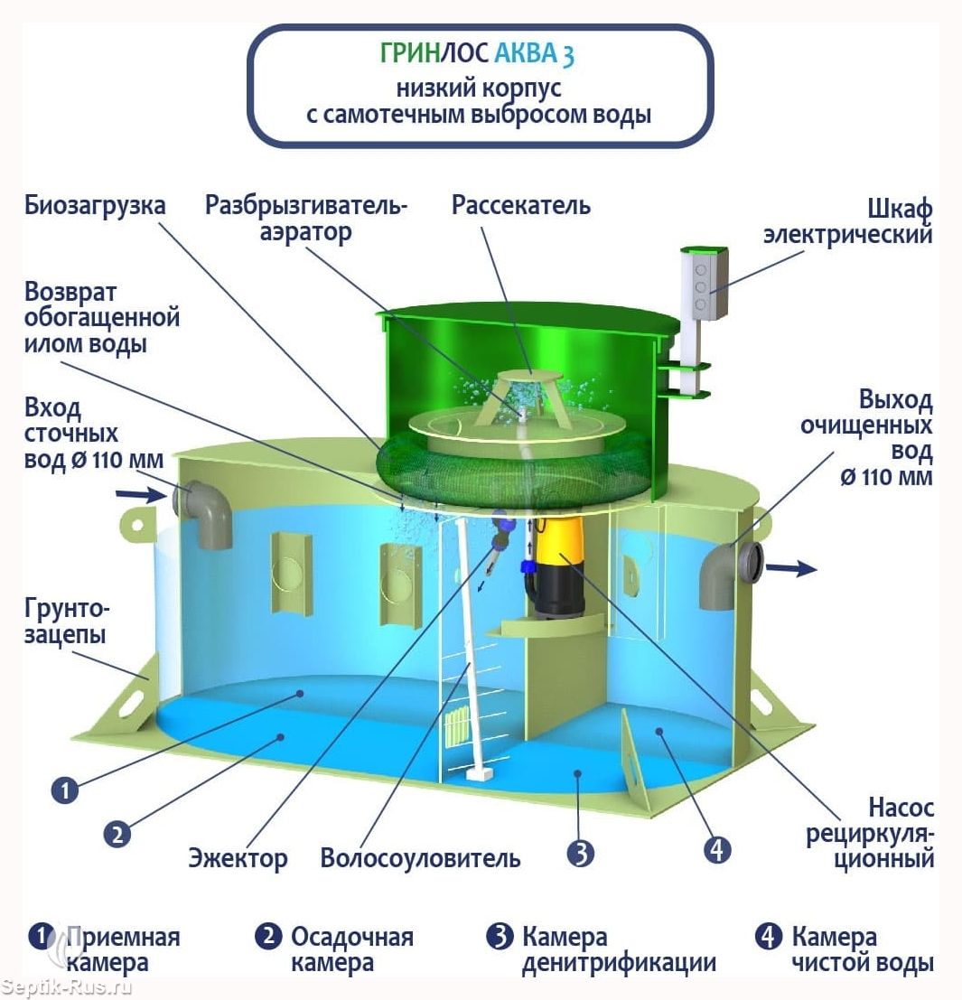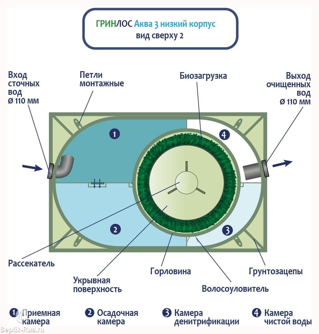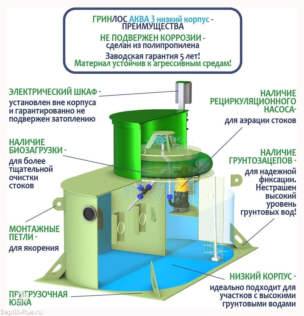 Отличительными особенностями септика ГРИНЛОС Аква 3 низкий корпус являются: